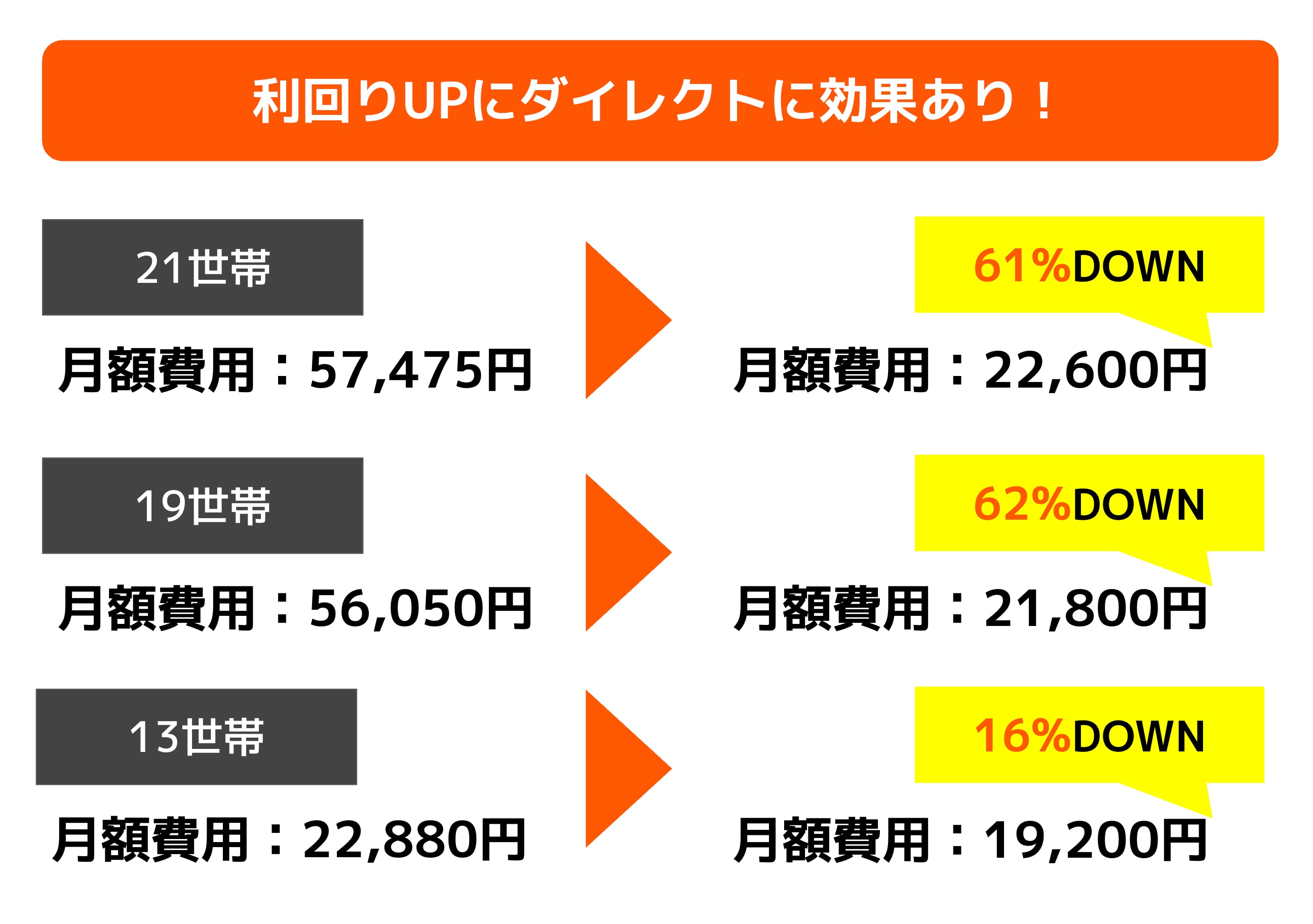 以下のようなコスト削減に成功されたオーナー様が多数おります!